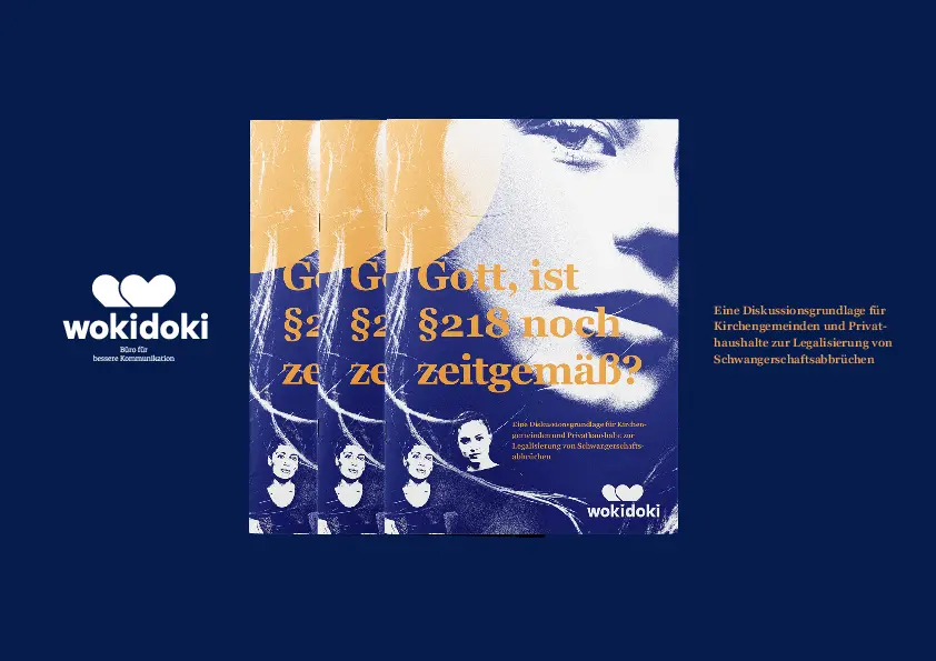 Schwangerschaftsabbrüche sind in Deutschland unter Strafe gestellt, und nun überlegt die Bundesregierung, ob man Abtreibungen nicht auch außerhalb des Strafrechts regeln könnte. Die Diskussionen in Kirche und Gesellschaft über diese Frage werden kontrovers geführt; die Evangelischen Frauen in Deutschland e.V. haben sich für eine Regelung außerhalb des Strafrechts ausgesprochen:Beschluss_EFiD_zum_Praragraphen_218__05_Oktober_2023 Zur evangelischen Freiheit gehört, sich auf der Basis aller Informationen selbst eine Meinung zu bilden. Dazu hilft eine Broschüre, die die Organisation wokidoki entworfen hat: Sie ist für Gespräche in Gemeinde und Verband gedacht und soll zum Nachdenken anregen, ohne erhobene Zeigefinger und mit Gehör für konservative Sorgen und Gegenstimmen (anbei Auszüge aus der Broschüre).